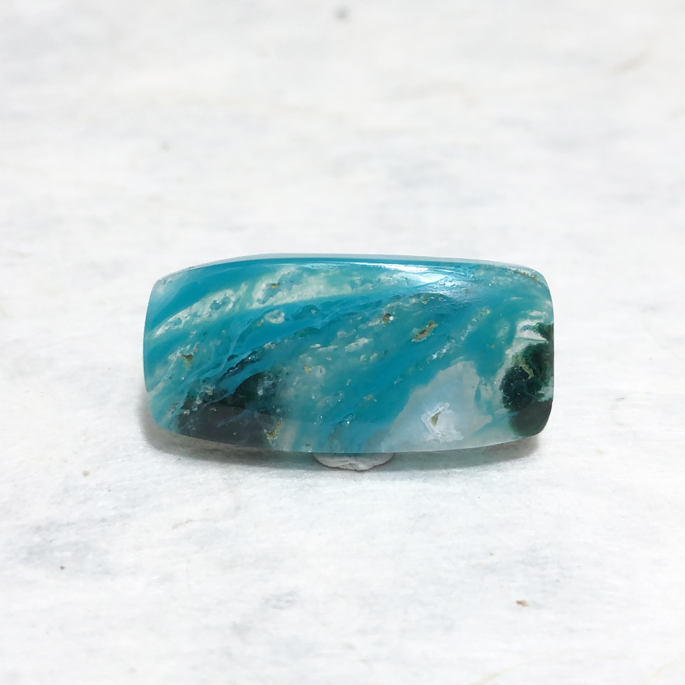 ジェムシリカブルーとクォーツ、マラカイトも共生しています。スクエアシェイプで、ブルー、クォーツ、マラカイトグリーンがバランスが良いです。